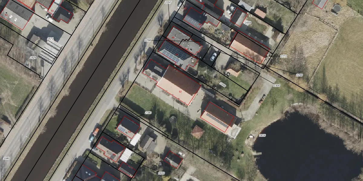 Het perceel waarop Vaartweg 52 staat heeft een oppervlakte van 7241 m². Dit is een zeer groot perceel. De perceeloppervlakte wordt geregistreerd door het Kadaster. Gedetailleerde informatie over de maten van dit perceel kunt u vinden in het rapport Kadastrale kaart met maatvoering van Vaartweg 52.