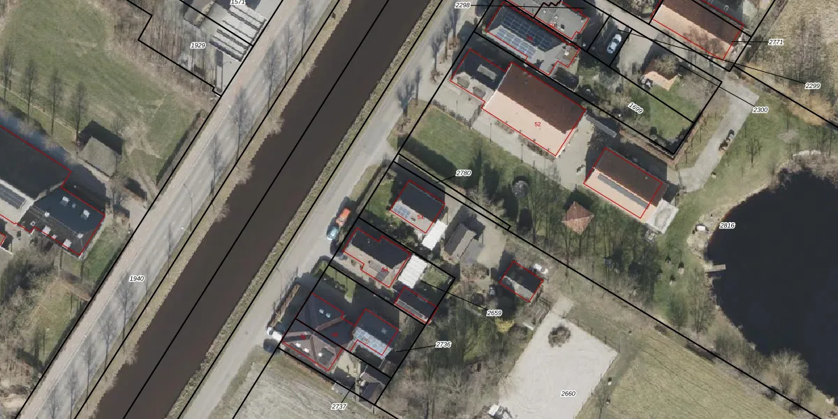 Het perceel waarop Vaartweg 53 staat heeft een oppervlakte van 6205 m². Dit is een zeer groot perceel. De perceeloppervlakte wordt geregistreerd door het Kadaster. Gedetailleerde informatie over de maten van dit perceel kunt u vinden in het rapport Kadastrale kaart met maatvoering van Vaartweg 53.