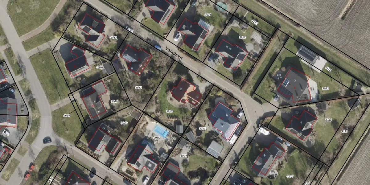 Het perceel waarop Vanghout 20 staat heeft een oppervlakte van 821 m². Dit is een groot perceel. De perceeloppervlakte wordt geregistreerd door het Kadaster. Gedetailleerde informatie over de maten van dit perceel kunt u vinden in het rapport Kadastrale kaart met maatvoering van Vanghout 20.