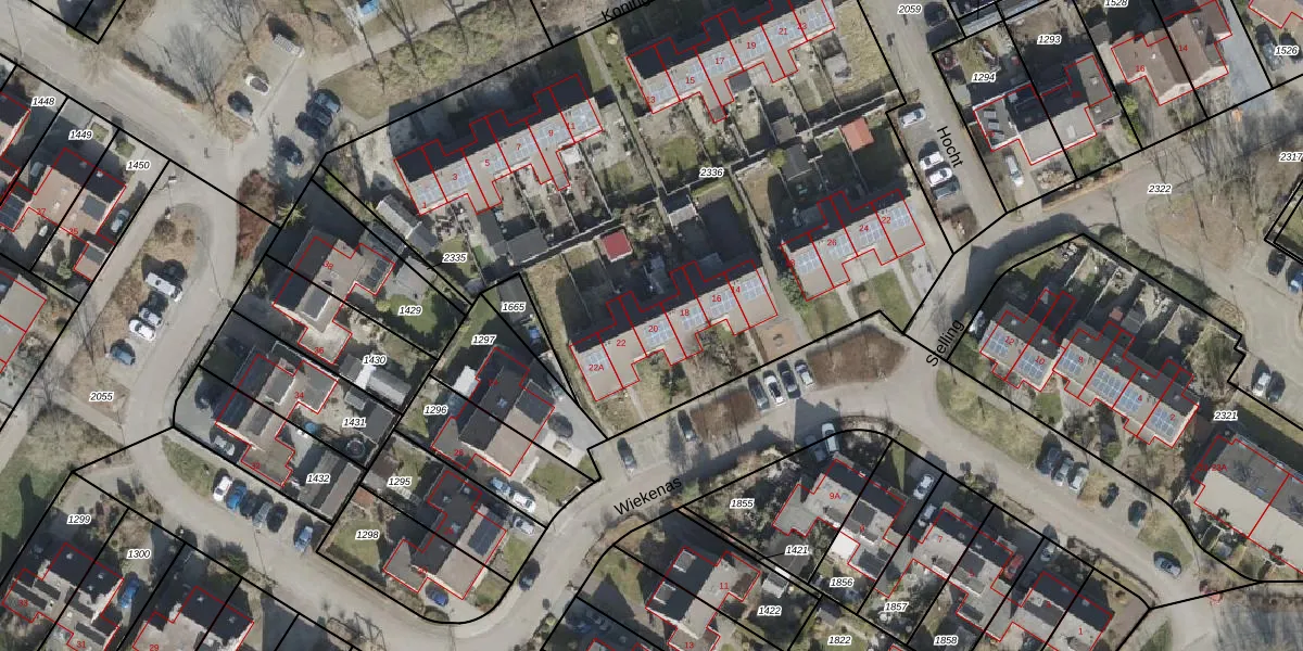 Het perceel waarop Wiekenas 20 staat heeft een oppervlakte van 4131 m². Dit is een zeer groot perceel. De perceeloppervlakte wordt geregistreerd door het Kadaster. Gedetailleerde informatie over de maten van dit perceel kunt u vinden in het rapport Kadastrale kaart met maatvoering van Wiekenas 20.