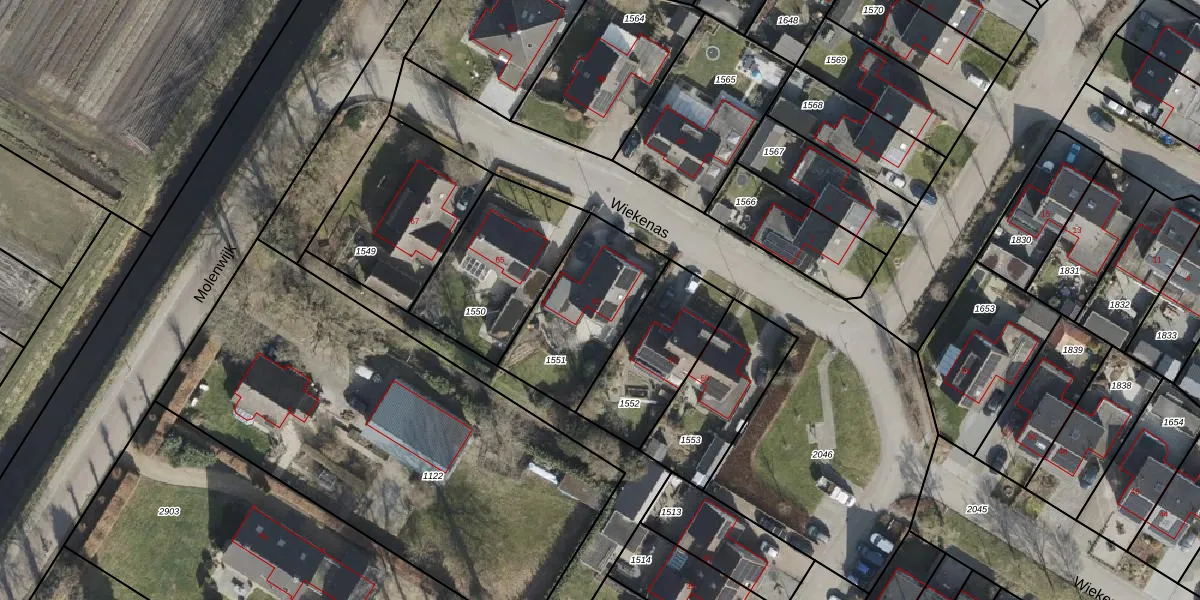 Het perceel waarop Wiekenas 63 staat heeft een oppervlakte van 455 m². Dit is een groot perceel. De perceeloppervlakte wordt geregistreerd door het Kadaster. Gedetailleerde informatie over de maten van dit perceel kunt u vinden in het rapport Kadastrale kaart met maatvoering van Wiekenas 63.