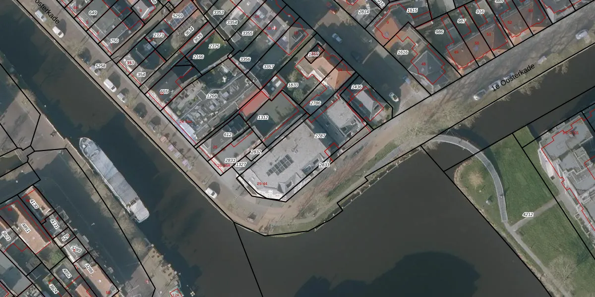 Het perceel waarop 1e Oosterkade 32 staat heeft een oppervlakte van 607 m². Dit is een groot perceel. De perceeloppervlakte wordt geregistreerd door het Kadaster. Gedetailleerde informatie over de maten van dit perceel kunt u vinden in het rapport Kadastrale kaart met maatvoering van 1e Oosterkade 32.