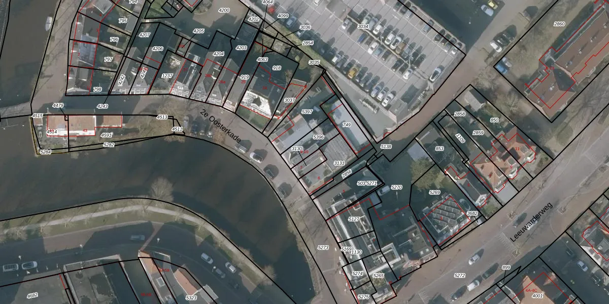 2e Oosterkade 9 is gelegen op kadastraal perceel SNE00D5396. Deze kadastrale aanduiding is uniek en wordt gebruikt door het Kadaster om eigendomsrechten en andere zakelijke rechten vast te leggen. Het perceel maakt onderdeel uit van de kadastrale gemeente Sneek.