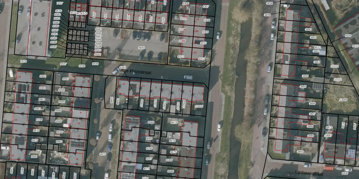 Age Piersstraat 5 is gelegen op kadastraal perceel SNE00C10503. Deze kadastrale aanduiding is uniek en wordt gebruikt door het Kadaster om eigendomsrechten en andere zakelijke rechten vast te leggen. Het perceel maakt onderdeel uit van de kadastrale gemeente Sneek.