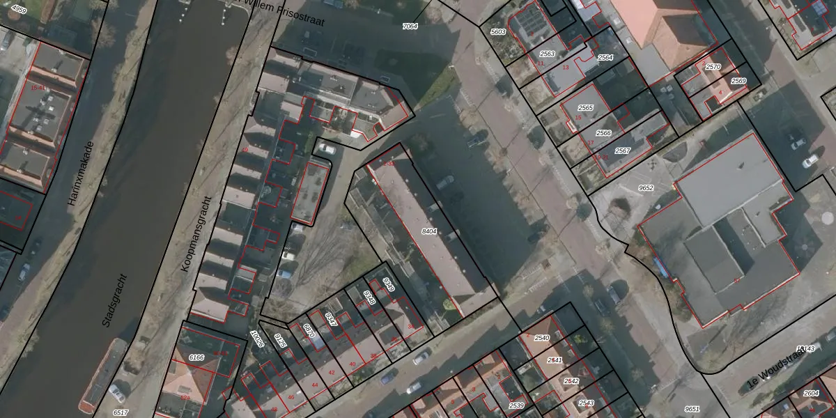 Het adres is gelegen op perceel 8404 in de sectie C en de kadastrale gemeente Sneek. De kadastrale aanduiding is aldus SNE00-C-8404. Het perceel is 785 m² groot. Dat is kleiner dan de gemiddelde perceeloppervlakte in Sneek, dat op 2095,56 m² ligt. Het kleinste perceel in de kadastrale gemeente is 0 m² groot. De grootste perceeloppervlakte is 61,3 ha. Op het perceel liggen in totaal 16 adressen. De huidige grenzen van het perceel zijn digitaal in de Basisregistratie Kadaster (BRK) geregistreerd op 28-07-2006.