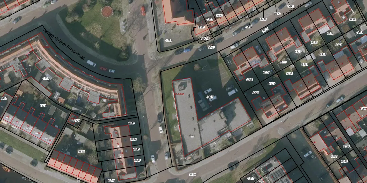 Amaliastraat 2-102 is gelegen op kadastraal perceel SNE00C8417. Deze kadastrale aanduiding is uniek en wordt gebruikt door het Kadaster om eigendomsrechten en andere zakelijke rechten vast te leggen. Het perceel maakt onderdeel uit van de kadastrale gemeente Sneek.