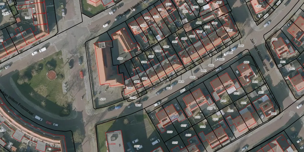 Amaliastraat 5 is gelegen op kadastraal perceel SNE00C3288. Deze kadastrale aanduiding is uniek en wordt gebruikt door het Kadaster om eigendomsrechten en andere zakelijke rechten vast te leggen. Het perceel maakt onderdeel uit van de kadastrale gemeente Sneek.
