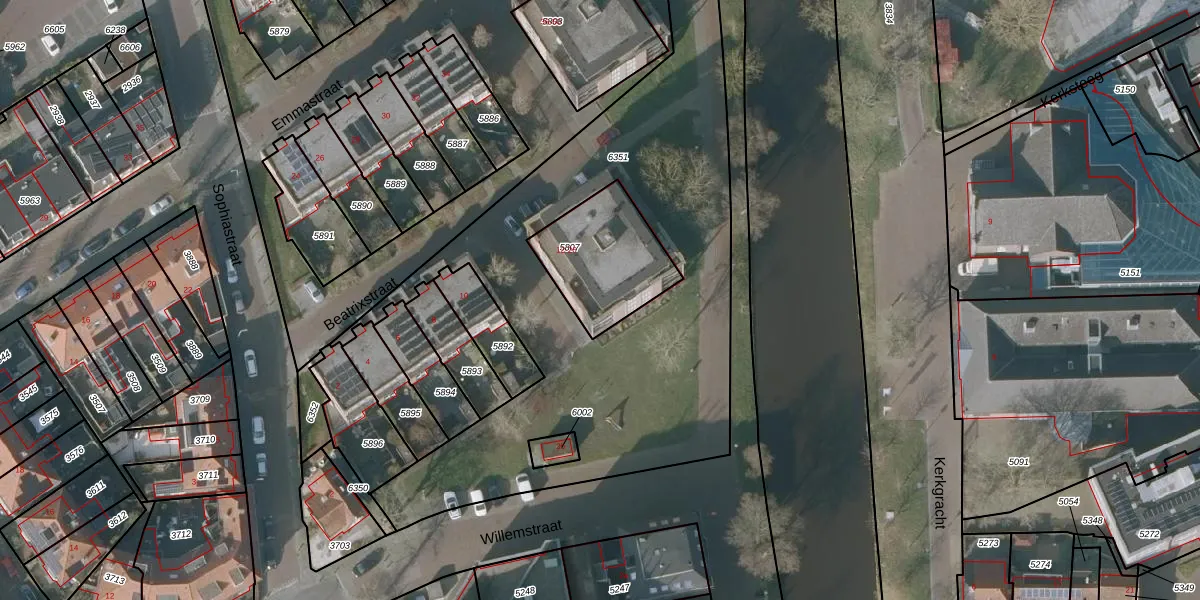 Beatrixstraat 16 is gelegen op kadastraal perceel SNE00A5807. Deze kadastrale aanduiding is uniek en wordt gebruikt door het Kadaster om eigendomsrechten en andere zakelijke rechten vast te leggen. Het perceel maakt onderdeel uit van de kadastrale gemeente Sneek.