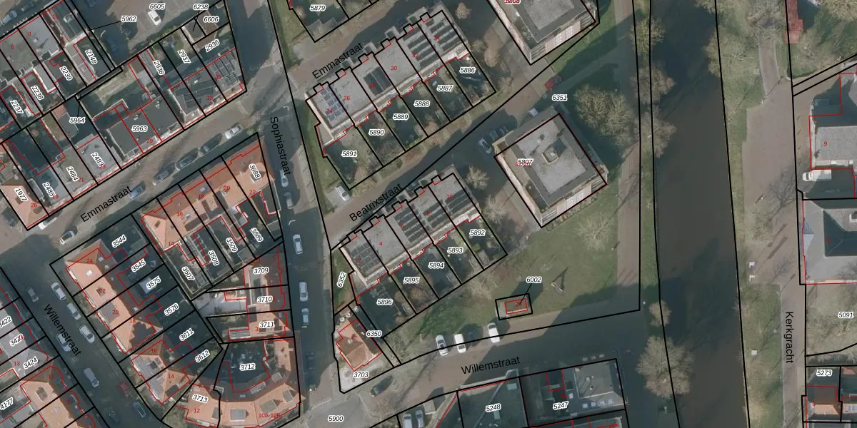 Beatrixstraat 8 is gelegen op kadastraal perceel SNE00A5893. Deze kadastrale aanduiding is uniek en wordt gebruikt door het Kadaster om eigendomsrechten en andere zakelijke rechten vast te leggen. Het perceel maakt onderdeel uit van de kadastrale gemeente Sneek.