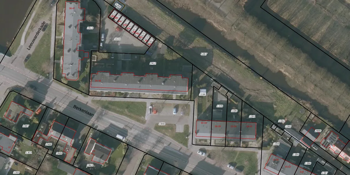 Berkenlaan 34 is gelegen op kadastraal perceel SNE00D1412. Deze kadastrale aanduiding is uniek en wordt gebruikt door het Kadaster om eigendomsrechten en andere zakelijke rechten vast te leggen. Het perceel maakt onderdeel uit van de kadastrale gemeente Sneek.