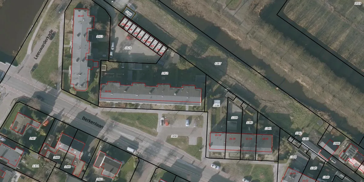 Berkenlaan 38 is gelegen op kadastraal perceel SNE00D1412. Deze kadastrale aanduiding is uniek en wordt gebruikt door het Kadaster om eigendomsrechten en andere zakelijke rechten vast te leggen. Het perceel maakt onderdeel uit van de kadastrale gemeente Sneek.