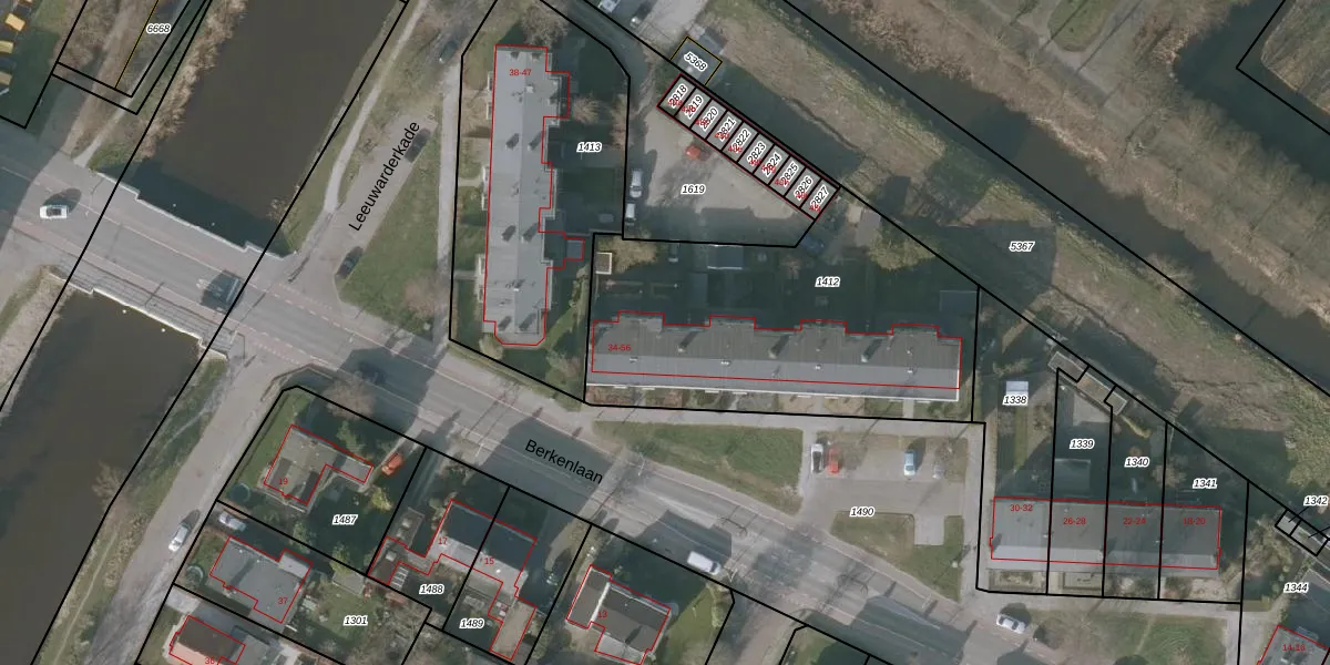 Berkenlaan 54 is gelegen op kadastraal perceel SNE00D1412. Deze kadastrale aanduiding is uniek en wordt gebruikt door het Kadaster om eigendomsrechten en andere zakelijke rechten vast te leggen. Het perceel maakt onderdeel uit van de kadastrale gemeente Sneek.