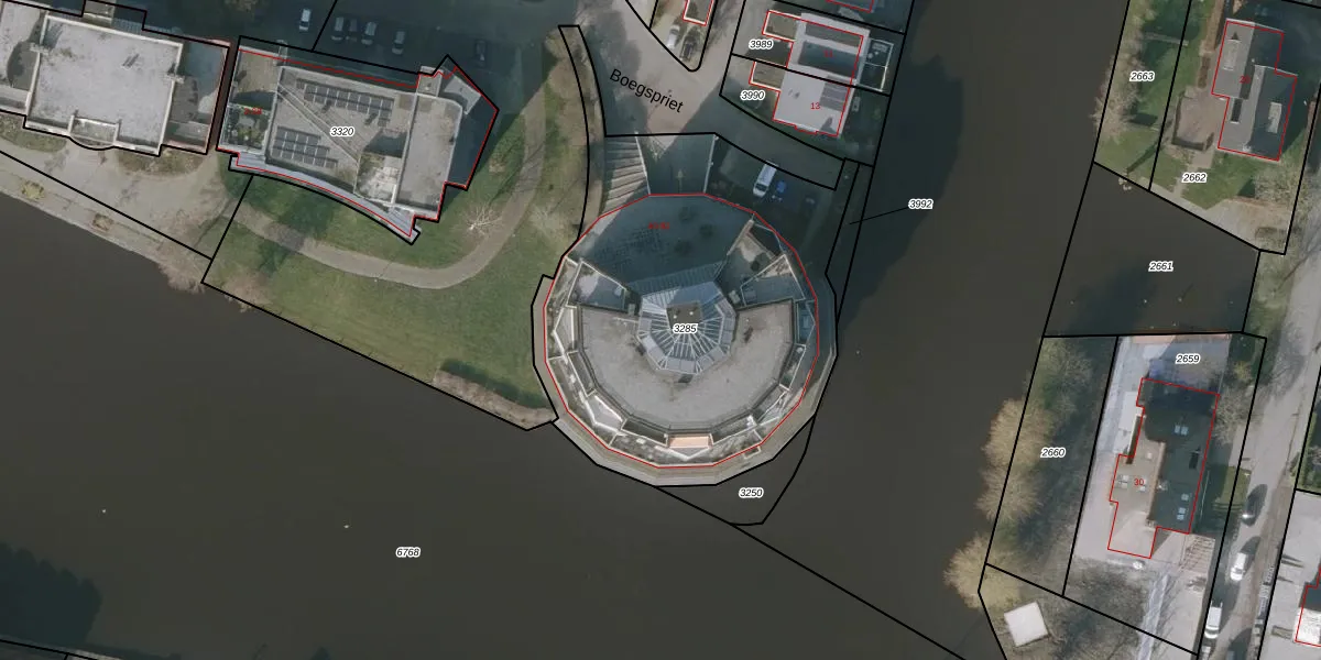 Het perceel waarop Boegspriet 66 staat heeft een oppervlakte van 2051 m². Dit is een zeer groot perceel. De perceeloppervlakte wordt geregistreerd door het Kadaster. Gedetailleerde informatie over de maten van dit perceel kunt u vinden in het rapport Kadastrale kaart met maatvoering van Boegspriet 66.