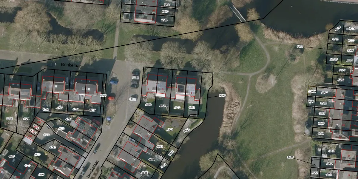 Gebruik de zoekbalk of klik op een perceel voor informatie over de adressen binnen dit perceel.