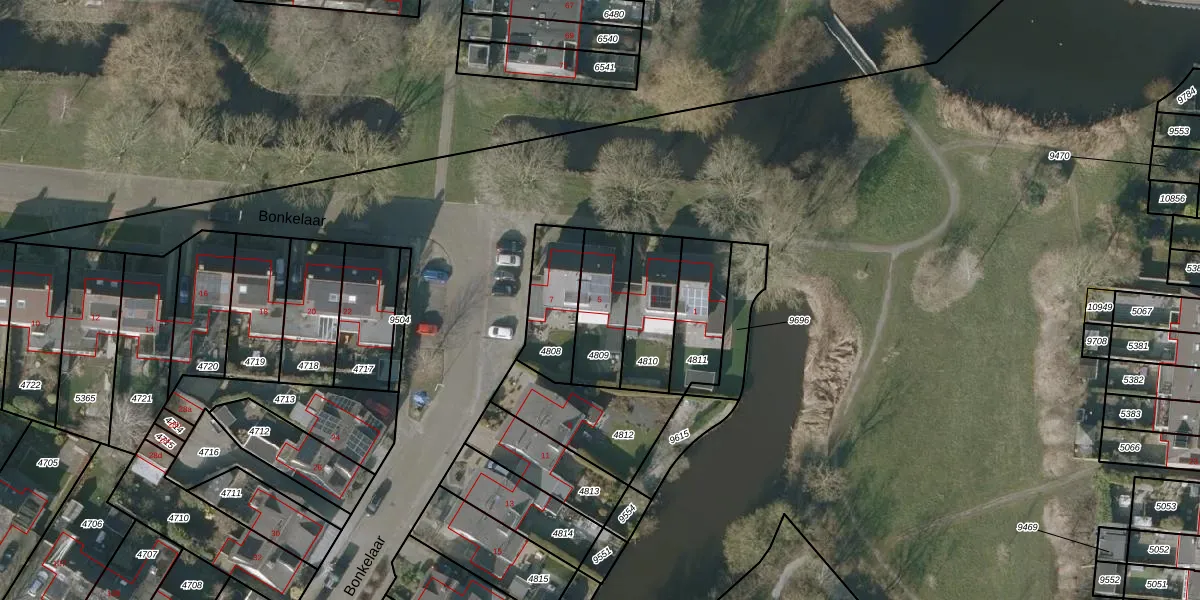 Bonkelaar 5 is gelegen op kadastraal perceel SNE00C4809. Deze kadastrale aanduiding is uniek en wordt gebruikt door het Kadaster om eigendomsrechten en andere zakelijke rechten vast te leggen. Het perceel maakt onderdeel uit van de kadastrale gemeente Sneek.