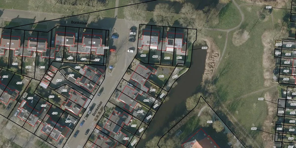 Bonkelaar 9 is gelegen op kadastraal perceel SNE00C4812. Deze kadastrale aanduiding is uniek en wordt gebruikt door het Kadaster om eigendomsrechten en andere zakelijke rechten vast te leggen. Het perceel maakt onderdeel uit van de kadastrale gemeente Sneek.