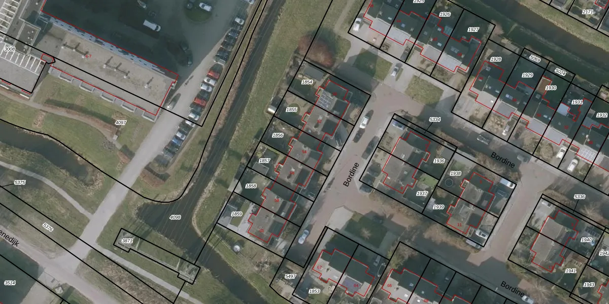 Bordine 54 is gelegen op kadastraal perceel SNE00D1856. Deze kadastrale aanduiding is uniek en wordt gebruikt door het Kadaster om eigendomsrechten en andere zakelijke rechten vast te leggen. Het perceel maakt onderdeel uit van de kadastrale gemeente Sneek.