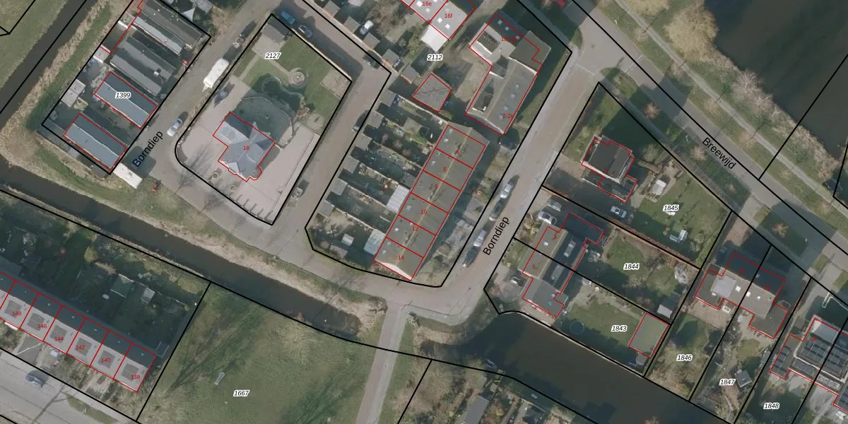 Het perceel waarop Borndiep 10 staat heeft een oppervlakte van 3518 m². Dit is een zeer groot perceel. De perceeloppervlakte wordt geregistreerd door het Kadaster. Gedetailleerde informatie over de maten van dit perceel kunt u vinden in het rapport Kadastrale kaart met maatvoering van Borndiep 10.