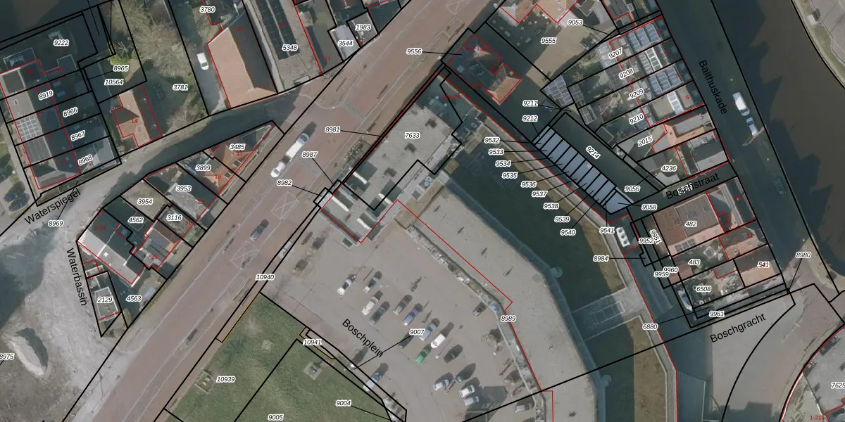 Boschplein 1 is gelegen op kadastraal perceel SNE00C8989. Deze kadastrale aanduiding is uniek en wordt gebruikt door het Kadaster om eigendomsrechten en andere zakelijke rechten vast te leggen. Het perceel maakt onderdeel uit van de kadastrale gemeente Sneek.