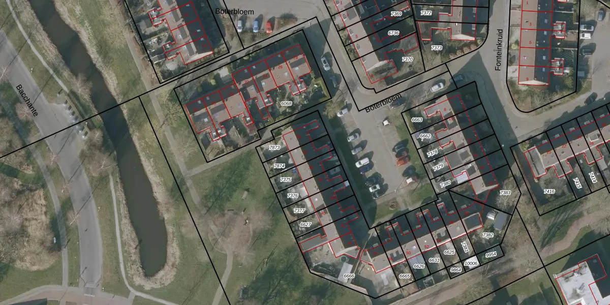 Boterbloem 32 is gelegen op kadastraal perceel SNE00C7874. Deze kadastrale aanduiding is uniek en wordt gebruikt door het Kadaster om eigendomsrechten en andere zakelijke rechten vast te leggen. Het perceel maakt onderdeel uit van de kadastrale gemeente Sneek.