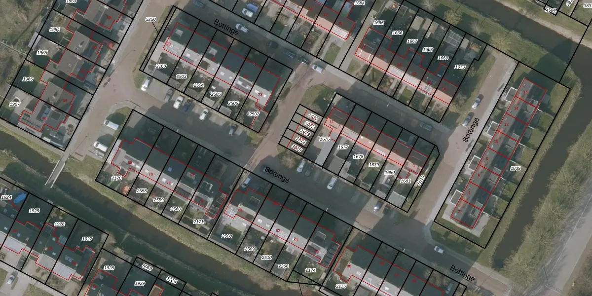 Het perceel waarop Bottinge 21 staat heeft een oppervlakte van 28 m². Dit is een klein perceel. De perceeloppervlakte wordt geregistreerd door het Kadaster. Gedetailleerde informatie over de maten van dit perceel kunt u vinden in het rapport Kadastrale kaart met maatvoering van Bottinge 21.