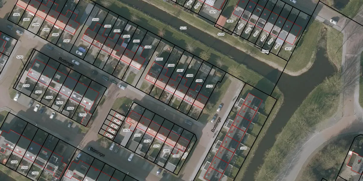Het perceel waarop Bottinge 22 staat heeft een oppervlakte van 185 m². Dit is een middelgroot perceel. De perceeloppervlakte wordt geregistreerd door het Kadaster. Gedetailleerde informatie over de maten van dit perceel kunt u vinden in het rapport Kadastrale kaart met maatvoering van Bottinge 22.