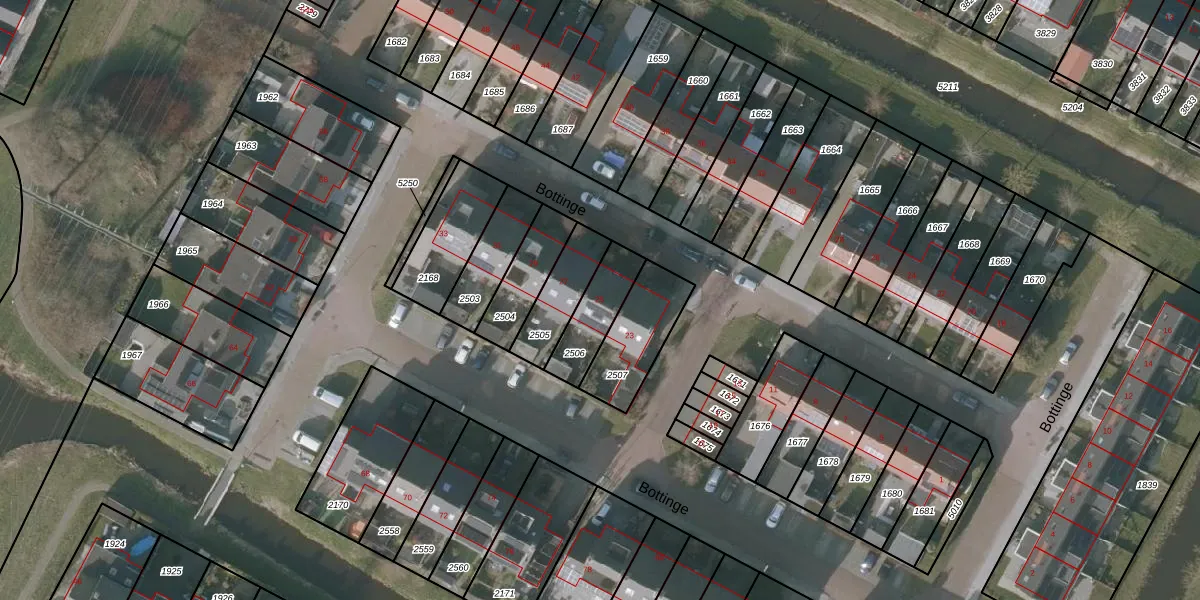 Bottinge 25 is gelegen op kadastraal perceel SNE00D2506. Deze kadastrale aanduiding is uniek en wordt gebruikt door het Kadaster om eigendomsrechten en andere zakelijke rechten vast te leggen. Het perceel maakt onderdeel uit van de kadastrale gemeente Sneek.