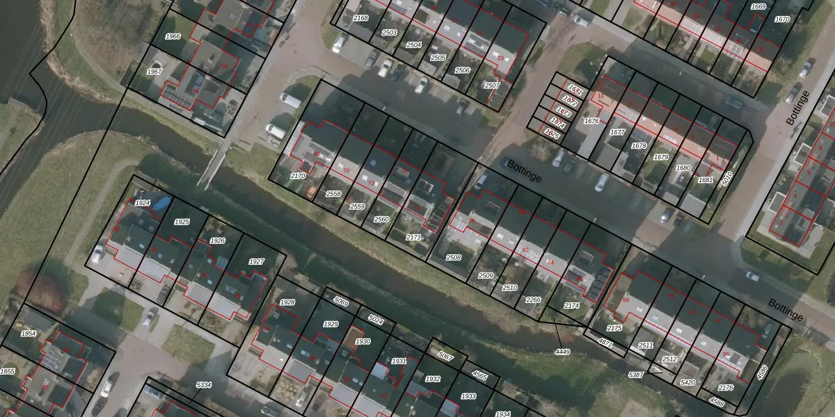Bottinge 76 is gelegen op kadastraal perceel SNE00D2171. Deze kadastrale aanduiding is uniek en wordt gebruikt door het Kadaster om eigendomsrechten en andere zakelijke rechten vast te leggen. Het perceel maakt onderdeel uit van de kadastrale gemeente Sneek.