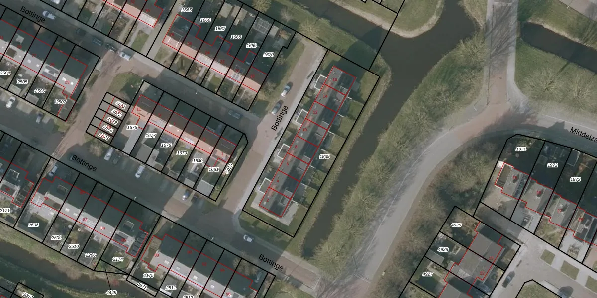 Bottinge 8 is gelegen op kadastraal perceel SNE00D1839. Deze kadastrale aanduiding is uniek en wordt gebruikt door het Kadaster om eigendomsrechten en andere zakelijke rechten vast te leggen. Het perceel maakt onderdeel uit van de kadastrale gemeente Sneek.