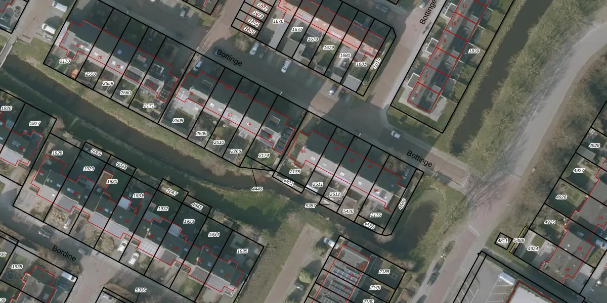 Bottinge 88 is gelegen op kadastraal perceel SNE00D2175. Deze kadastrale aanduiding is uniek en wordt gebruikt door het Kadaster om eigendomsrechten en andere zakelijke rechten vast te leggen. Het perceel maakt onderdeel uit van de kadastrale gemeente Sneek.