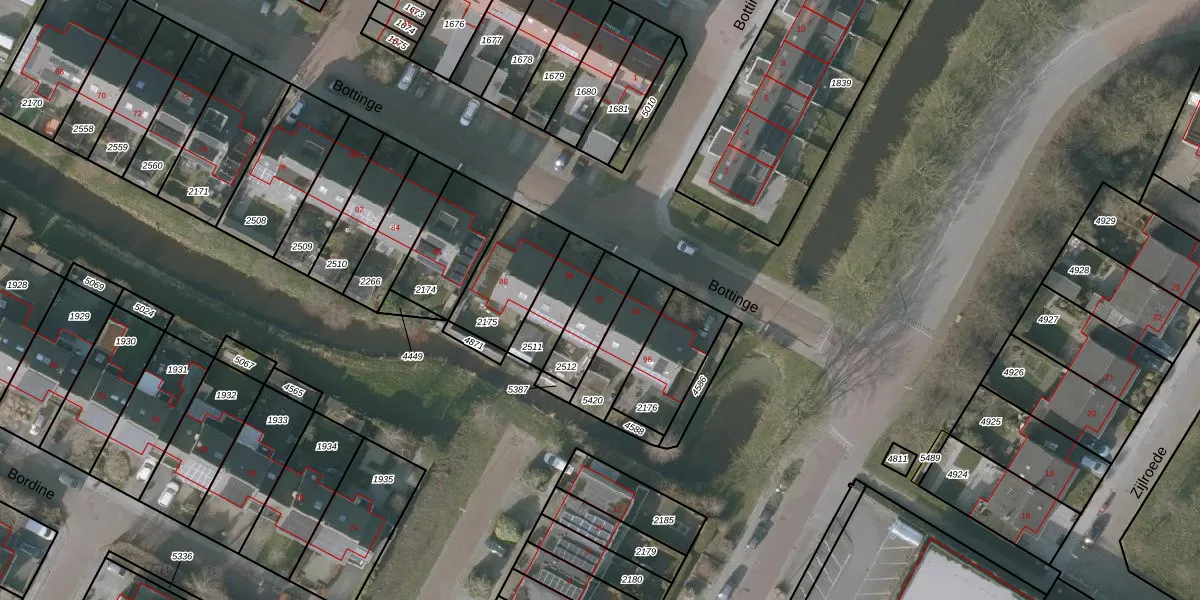 Bottinge 92 is gelegen op kadastraal perceel SNE00D2512. Deze kadastrale aanduiding is uniek en wordt gebruikt door het Kadaster om eigendomsrechten en andere zakelijke rechten vast te leggen. Het perceel maakt onderdeel uit van de kadastrale gemeente Sneek.