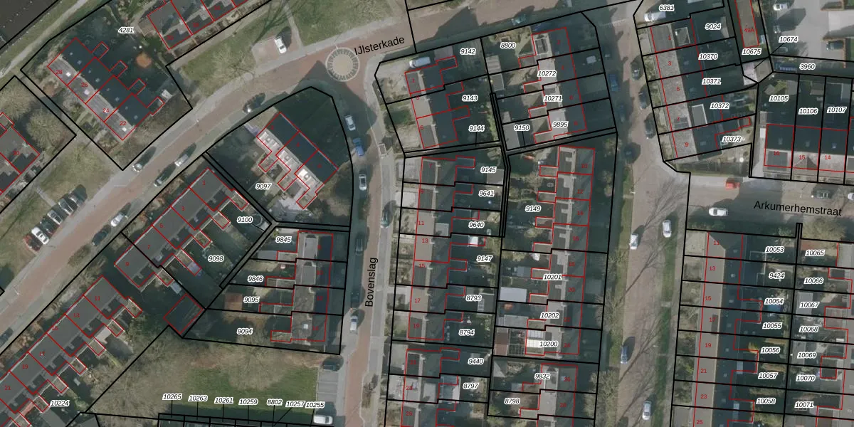 Gebruik de zoekbalk of klik op een perceel voor informatie over de adressen binnen dit perceel.