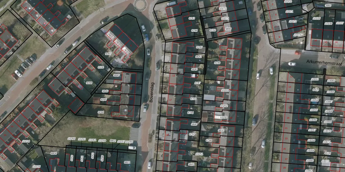 Het perceel waarop Bovenslag 15 staat heeft een oppervlakte van 290 m². Dit is een middelgroot perceel. De perceeloppervlakte wordt geregistreerd door het Kadaster. Gedetailleerde informatie over de maten van dit perceel kunt u vinden in het rapport Kadastrale kaart met maatvoering van Bovenslag 15.