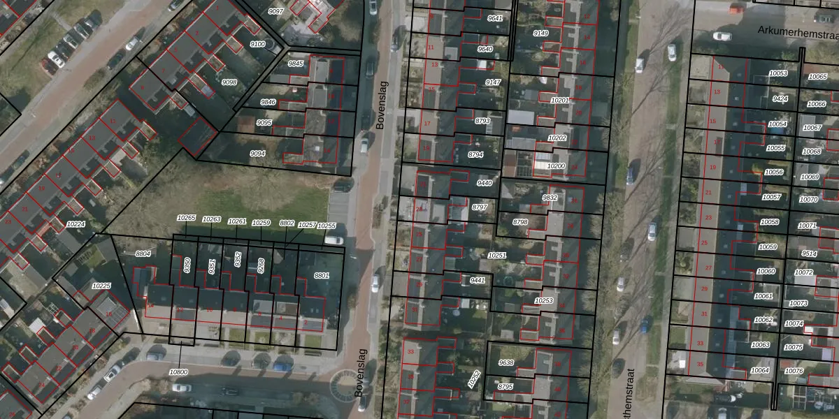 Het perceel waarop Bovenslag 23 staat heeft een oppervlakte van 143 m². Dit is een middelgroot perceel. De perceeloppervlakte wordt geregistreerd door het Kadaster. Gedetailleerde informatie over de maten van dit perceel kunt u vinden in het rapport Kadastrale kaart met maatvoering van Bovenslag 23.
