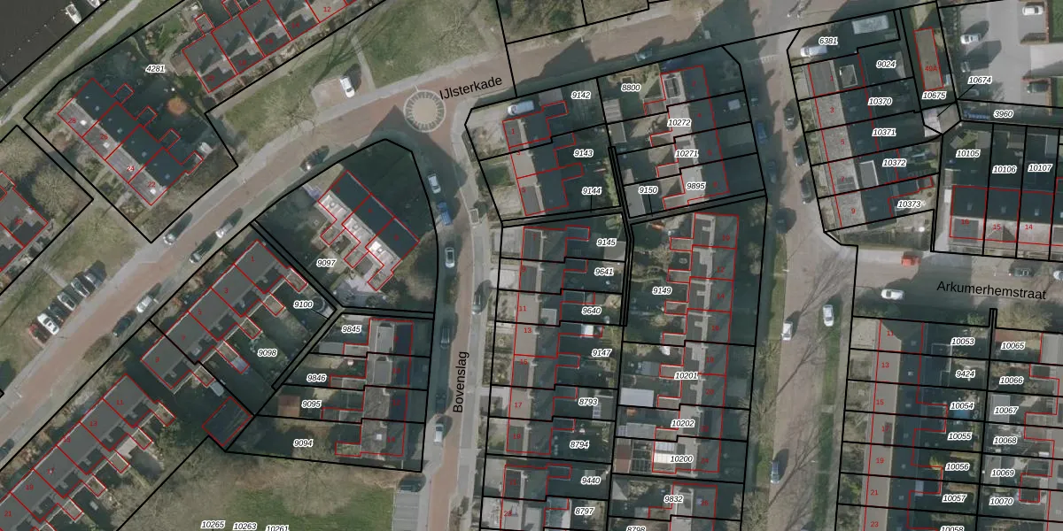 Het perceel waarop Bovenslag 9 staat heeft een oppervlakte van 141 m². Dit is een middelgroot perceel. De perceeloppervlakte wordt geregistreerd door het Kadaster. Gedetailleerde informatie over de maten van dit perceel kunt u vinden in het rapport Kadastrale kaart met maatvoering van Bovenslag 9.