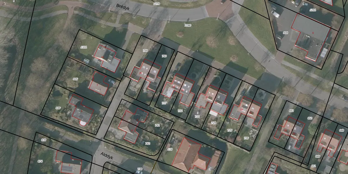 Het perceel waarop Brédyk 41 staat heeft een oppervlakte van 338 m². Dit is een groot perceel. De perceeloppervlakte wordt geregistreerd door het Kadaster. Gedetailleerde informatie over de maten van dit perceel kunt u vinden in het rapport Kadastrale kaart met maatvoering van Brédyk 41.