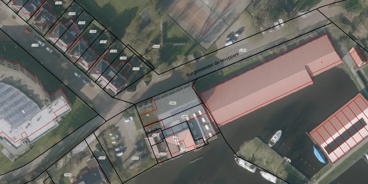 Burgemeester de Hooppark 1 is gelegen op kadastraal perceel SNE00D5482. Deze kadastrale aanduiding is uniek en wordt gebruikt door het Kadaster om eigendomsrechten en andere zakelijke rechten vast te leggen. Het perceel maakt onderdeel uit van de kadastrale gemeente Sneek.
