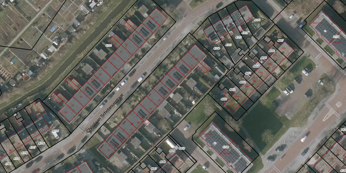 Het perceel waarop Christiaan Schotanusstraat 19 staat heeft een oppervlakte van 4665 m². Dit is een zeer groot perceel. De perceeloppervlakte wordt geregistreerd door het Kadaster. Gedetailleerde informatie over de maten van dit perceel kunt u vinden in het rapport Kadastrale kaart met maatvoering van Christiaan Schotanusstraat 19.