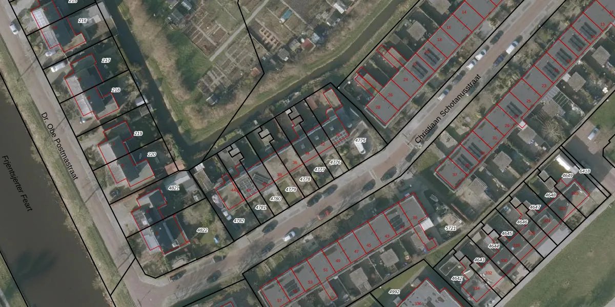 Christiaan Schotanusstraat 34 is gelegen op kadastraal perceel SNE00A4777. Deze kadastrale aanduiding is uniek en wordt gebruikt door het Kadaster om eigendomsrechten en andere zakelijke rechten vast te leggen. Het perceel maakt onderdeel uit van de kadastrale gemeente Sneek.