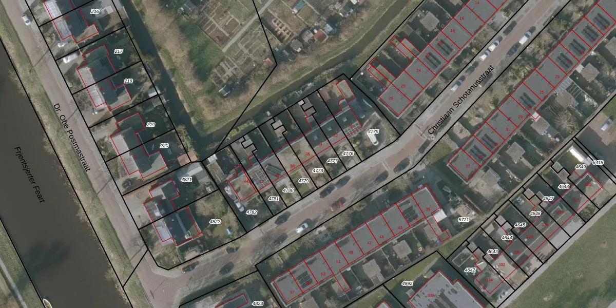 Christiaan Schotanusstraat 36 is gelegen op kadastraal perceel SNE00A4778. Deze kadastrale aanduiding is uniek en wordt gebruikt door het Kadaster om eigendomsrechten en andere zakelijke rechten vast te leggen. Het perceel maakt onderdeel uit van de kadastrale gemeente Sneek.