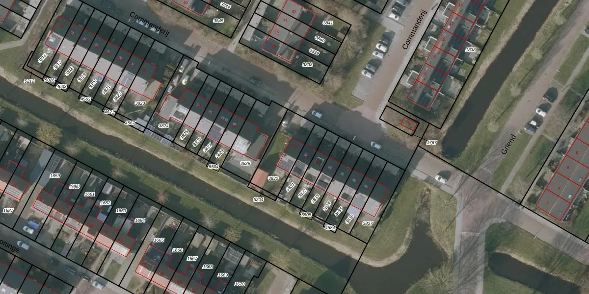 Het perceel waarop Commanderij 15 staat heeft een oppervlakte van 297 m². Dit is een middelgroot perceel. De perceeloppervlakte wordt geregistreerd door het Kadaster. Gedetailleerde informatie over de maten van dit perceel kunt u vinden in het rapport Kadastrale kaart met maatvoering van Commanderij 15.