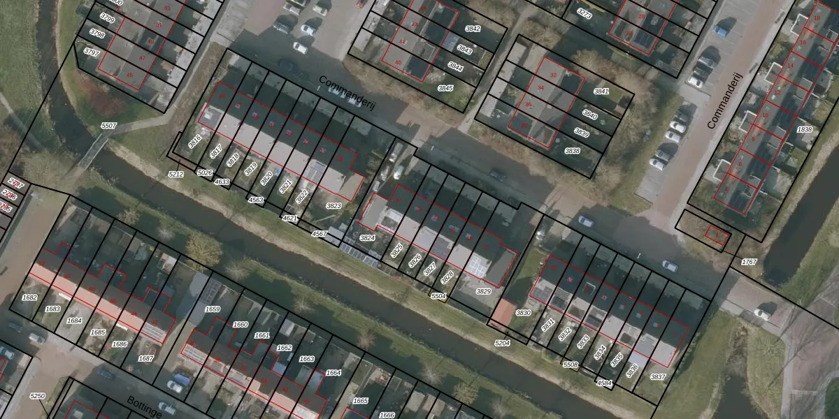 Het perceel waarop Commanderij 25 staat heeft een oppervlakte van 121 m². Dit is een middelgroot perceel. De perceeloppervlakte wordt geregistreerd door het Kadaster. Gedetailleerde informatie over de maten van dit perceel kunt u vinden in het rapport Kadastrale kaart met maatvoering van Commanderij 25.