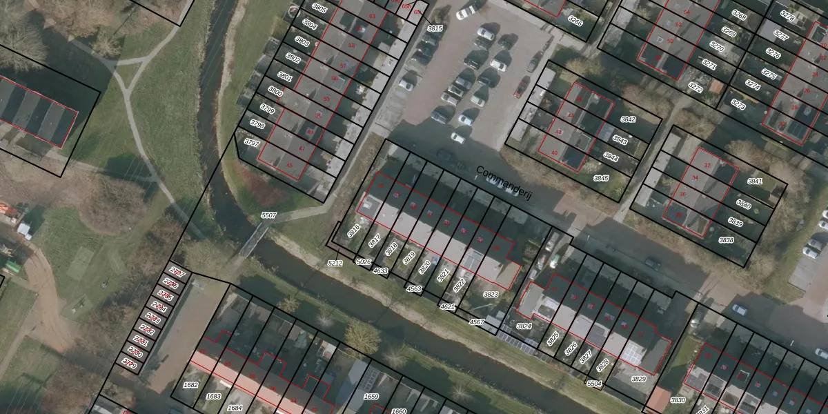 Het perceel waarop Commanderij 39 staat heeft een oppervlakte van 129 m². Dit is een middelgroot perceel. De perceeloppervlakte wordt geregistreerd door het Kadaster. Gedetailleerde informatie over de maten van dit perceel kunt u vinden in het rapport Kadastrale kaart met maatvoering van Commanderij 39.