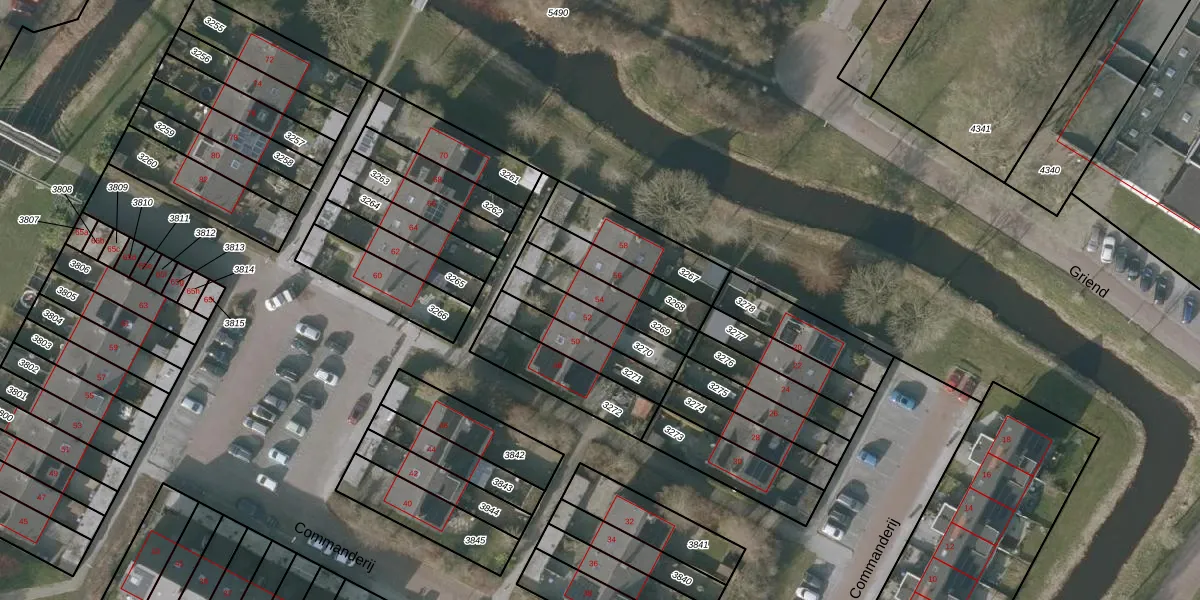 Commanderij 54 is gelegen op kadastraal perceel SNE00D3269. Deze kadastrale aanduiding is uniek en wordt gebruikt door het Kadaster om eigendomsrechten en andere zakelijke rechten vast te leggen. Het perceel maakt onderdeel uit van de kadastrale gemeente Sneek.