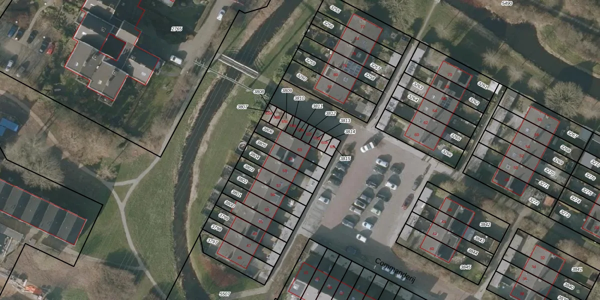 Het perceel waarop Commanderij 63 staat heeft een oppervlakte van 128 m². Dit is een middelgroot perceel. De perceeloppervlakte wordt geregistreerd door het Kadaster. Gedetailleerde informatie over de maten van dit perceel kunt u vinden in het rapport Kadastrale kaart met maatvoering van Commanderij 63.