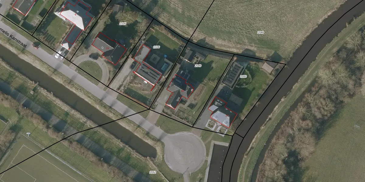 Cornelis Kanstraat 15 is gelegen op kadastraal perceel SNE00E2049. Deze kadastrale aanduiding is uniek en wordt gebruikt door het Kadaster om eigendomsrechten en andere zakelijke rechten vast te leggen. Het perceel maakt onderdeel uit van de kadastrale gemeente Sneek.