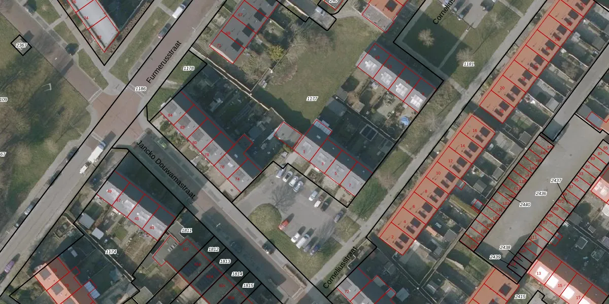 Corneliusstraat 1 is gelegen op kadastraal perceel SNE00E1177. Deze kadastrale aanduiding is uniek en wordt gebruikt door het Kadaster om eigendomsrechten en andere zakelijke rechten vast te leggen. Het perceel maakt onderdeel uit van de kadastrale gemeente Sneek.