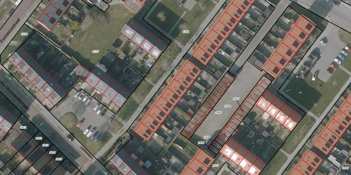 Corneliusstraat 12 is gelegen op kadastraal perceel SNE00E2415. Deze kadastrale aanduiding is uniek en wordt gebruikt door het Kadaster om eigendomsrechten en andere zakelijke rechten vast te leggen. Het perceel maakt onderdeel uit van de kadastrale gemeente Sneek.