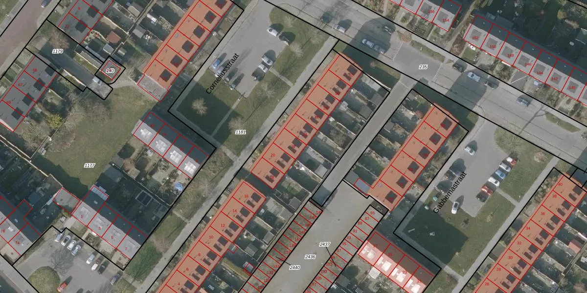 Het perceel waarop Corneliusstraat 22 staat heeft een oppervlakte van 6755 m². Dit is een zeer groot perceel. De perceeloppervlakte wordt geregistreerd door het Kadaster. Gedetailleerde informatie over de maten van dit perceel kunt u vinden in het rapport Kadastrale kaart met maatvoering van Corneliusstraat 22.