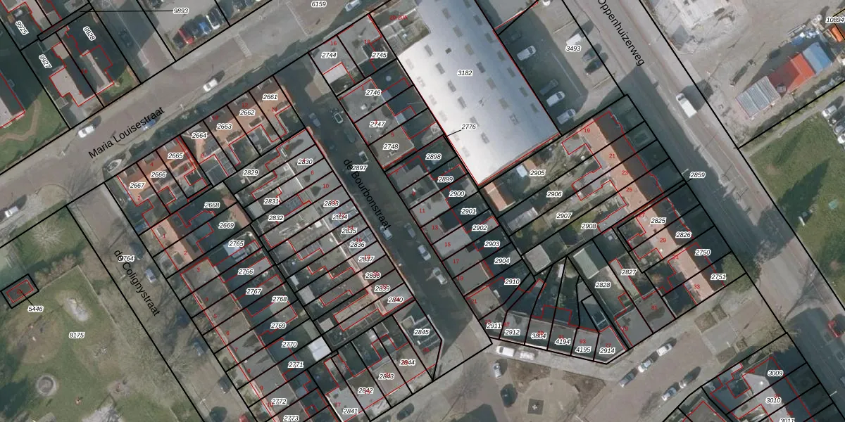 Het perceel waarop de Bourbonstraat 11 staat heeft een oppervlakte van 81 m². Dit is een klein perceel. De perceeloppervlakte wordt geregistreerd door het Kadaster. Gedetailleerde informatie over de maten van dit perceel kunt u vinden in het rapport Kadastrale kaart met maatvoering van de Bourbonstraat 11.